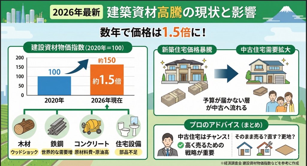今回は、この資材高騰が皆さまの不動産売却にどう影響するのか、分かりやすく解説します!